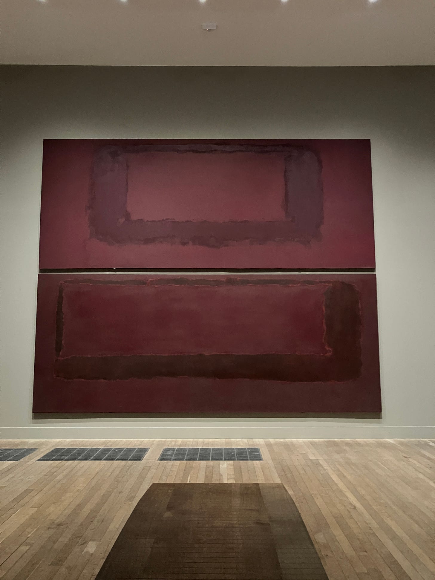 I was standing outside the Rothko room at the Tate Modern, the ex-powerplant cum museum, having just spent what felt like two minutes, or an eternity, engulfed in the Seagram Murals, the only real reason I was there, since the last time they were on loan. The room was quiet; it was a Tuesday morning, and there was no one else. Before I asked the attendant about the Bacon paintings, I put my sunglasses on so he couldn’t see that my eyes were teary.